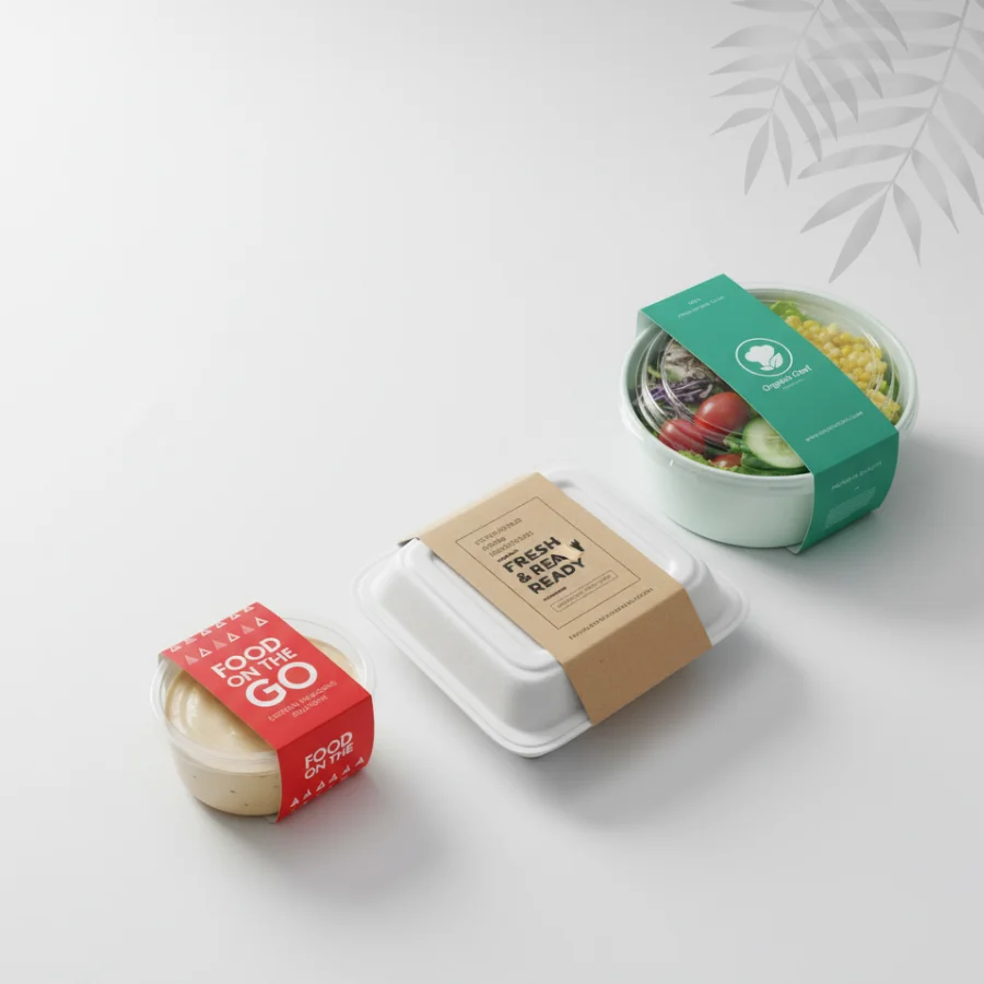 Wraps for trays, clamshells, tubs, and cartons. Great for ready meals, bakery goods, confectionery, and deli packs. - Coffee cup sleeves